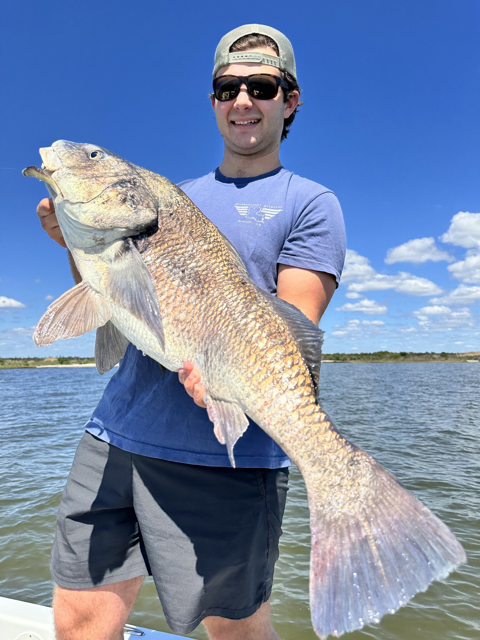 Baby Sidney Tiblier and I had a small window yesterday to run the Skeeter and try out the LTD 3” Paddle Tail by NLBN. After a short ride from Foggy Waters Marina to the shoreline between Bayou Bonfouca and Bayou Lacombe, we started scanning the shallows. It was not ideal conditions for sight fishing, but from the height of our Frog Daddy casting platform it was more than manageable.